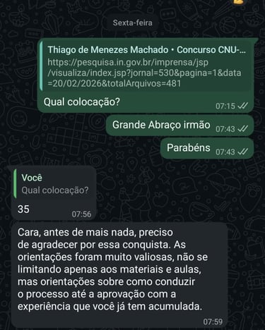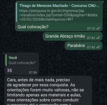 Parabéns Thiago por sua APROVAÇÃO 35 lugar para ATJD no CNU estudando pós edital (3 meses).